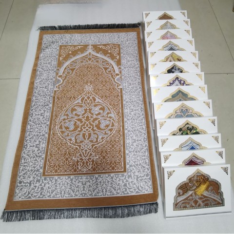 Alfombra plegable portátil de bolsillo para viaje, tapete de lujo con bolsa musulmana, Ramadán islámico, ajadah, Madina